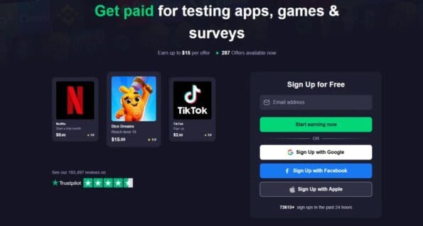 FreeCash is one of the most popular earning websites in the world. You can earn real money by completing surveys, small tasks, playing games, and trying out trial offers — all without any investment!