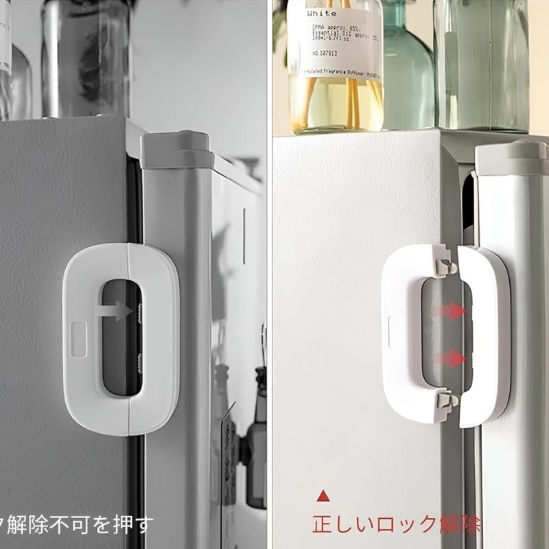 The Child Safety Refrigerator Lock is designed to keep your fridge doors securely closed and your children or pets safe. With an easy-to-use double-button system, this lock is simple for adults to operate but difficult for little hands to open.